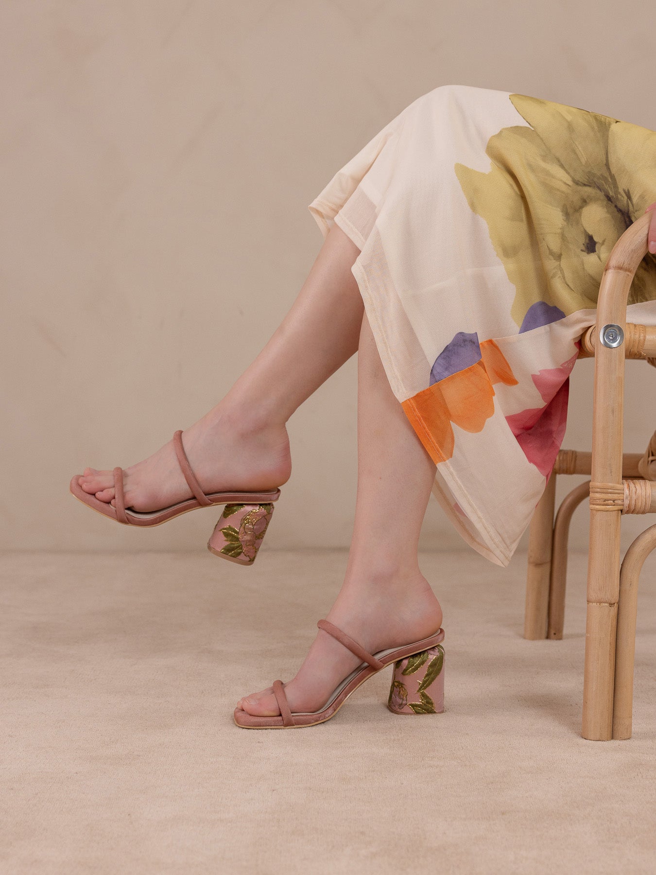 The Margaret | Beige Rattan Heel
