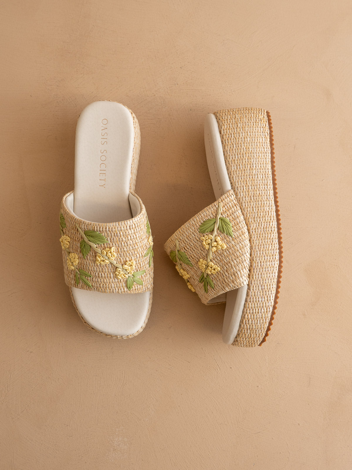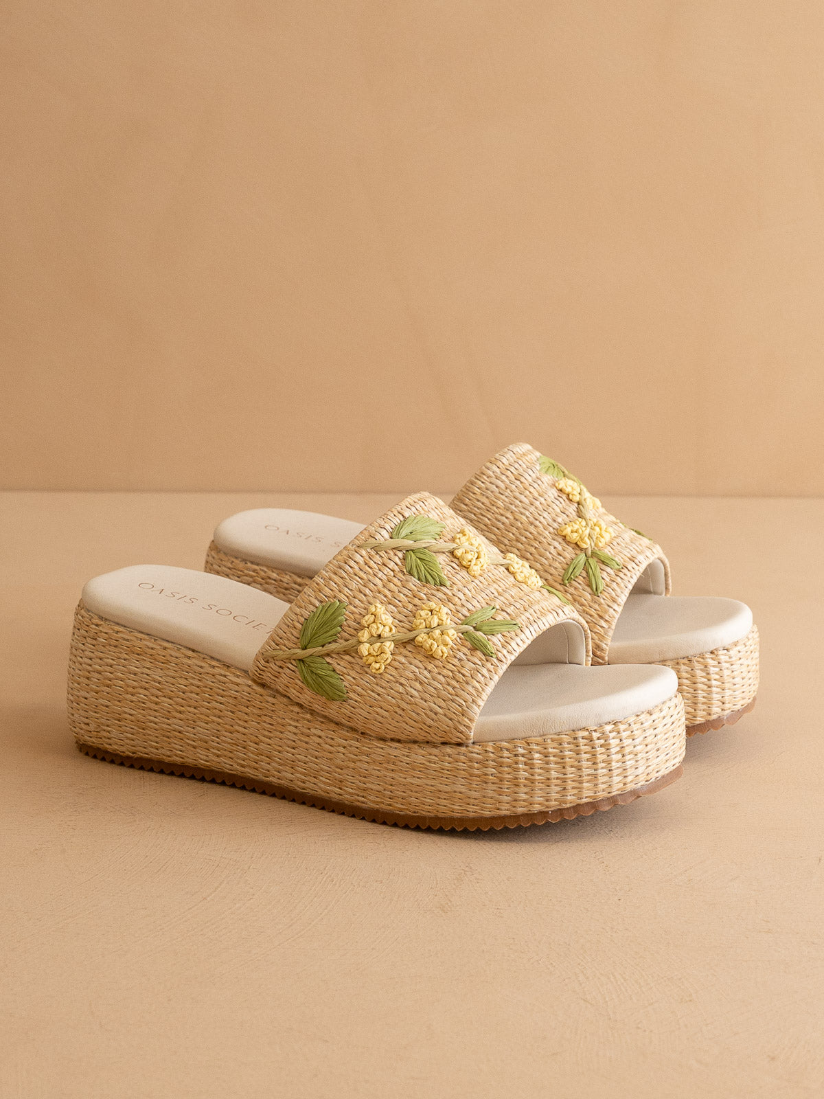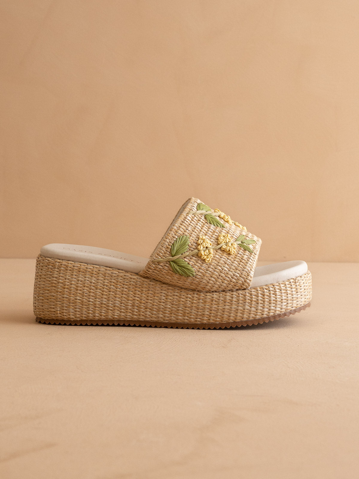 The Taniya | Natural Embroidered Raffia Platform Slide