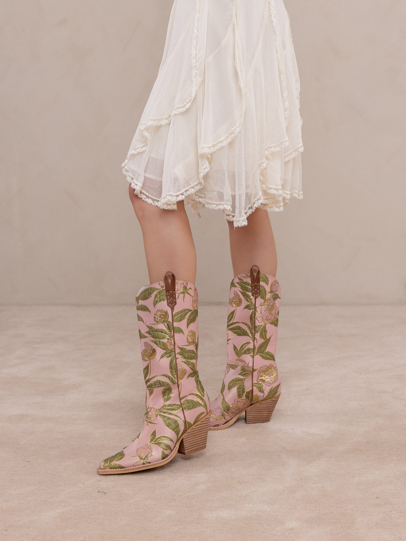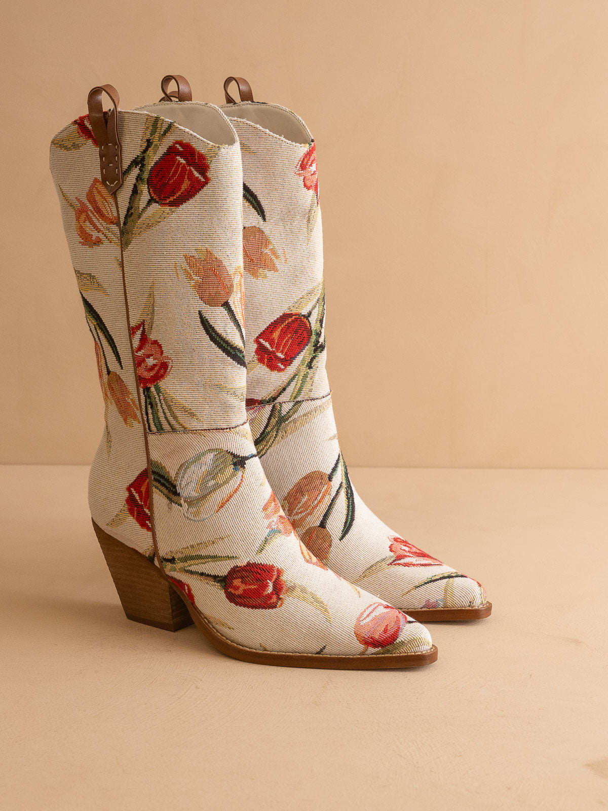 The Tesha | Beige Tulip Floral Cowboy Boot